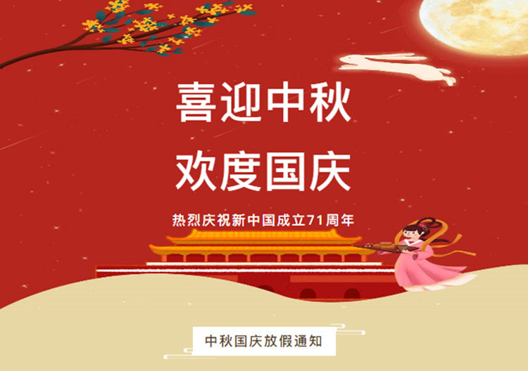尊敬的各位家人:您好!衷心感谢你们一直以来对我公司工作的支持与帮助,根据国务院关于中秋、国庆节放假的安排,为了让大家度过一个充实、平安的假期,现把放假时间及温馨提示通知如下!愿小长假平安相随,快乐相伴!