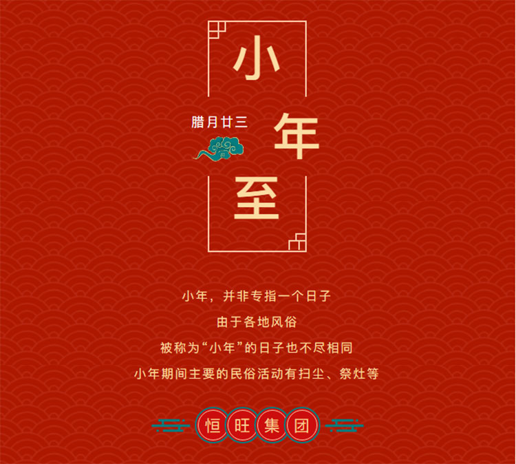 恒旺集团携全体员工恭祝全国人民:小年快乐、身体健康、财运旺盛、阖家幸福、万事如意、心想事成!