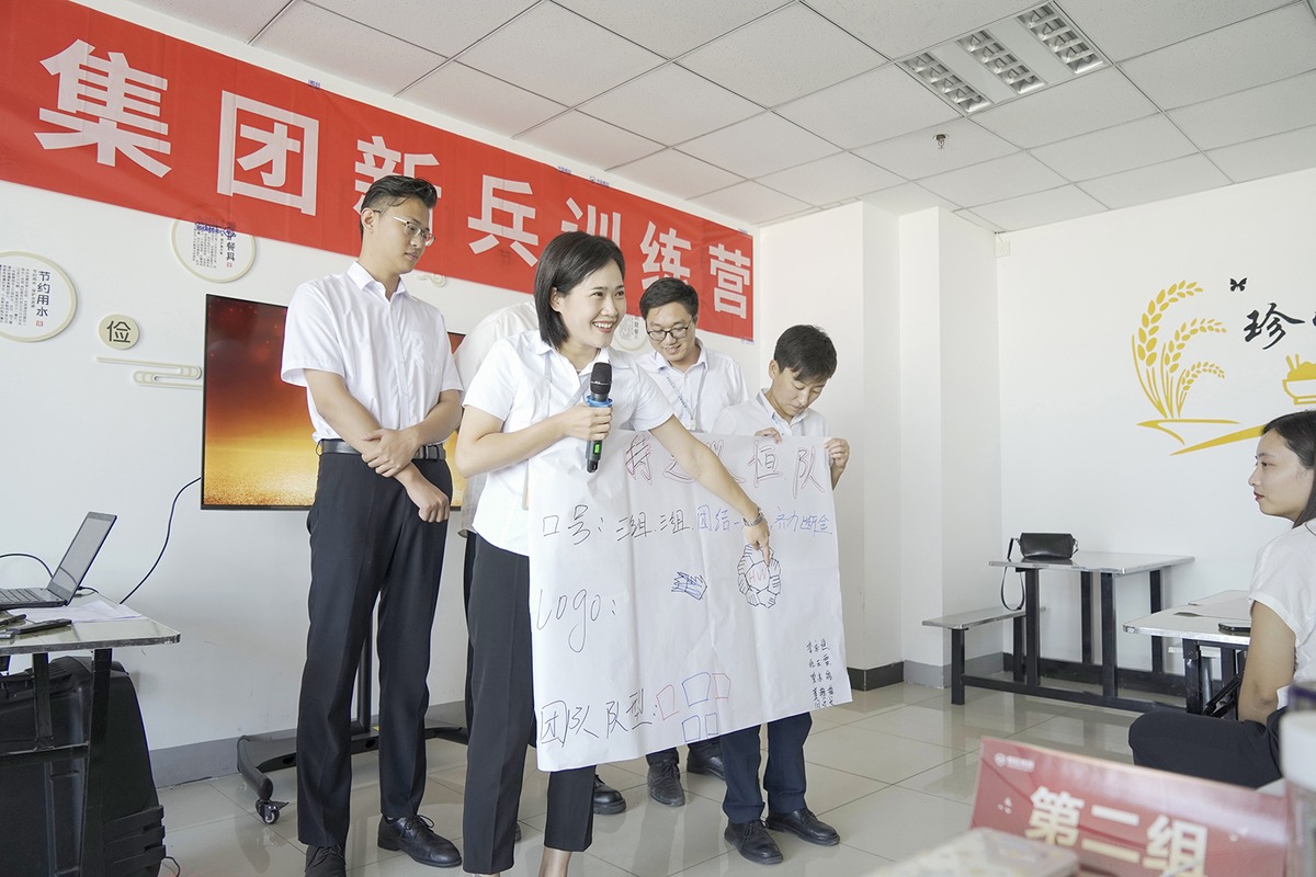 培训伊始,新员工们被随机分为不同的小组,团队建设环节中,大家纷纷展开头脑风暴,经过热烈的讨论和思维的碰撞,每个小组都形成了独具特色的团队名称、口号和标识,充分展现了团队的凝聚力和创造力。