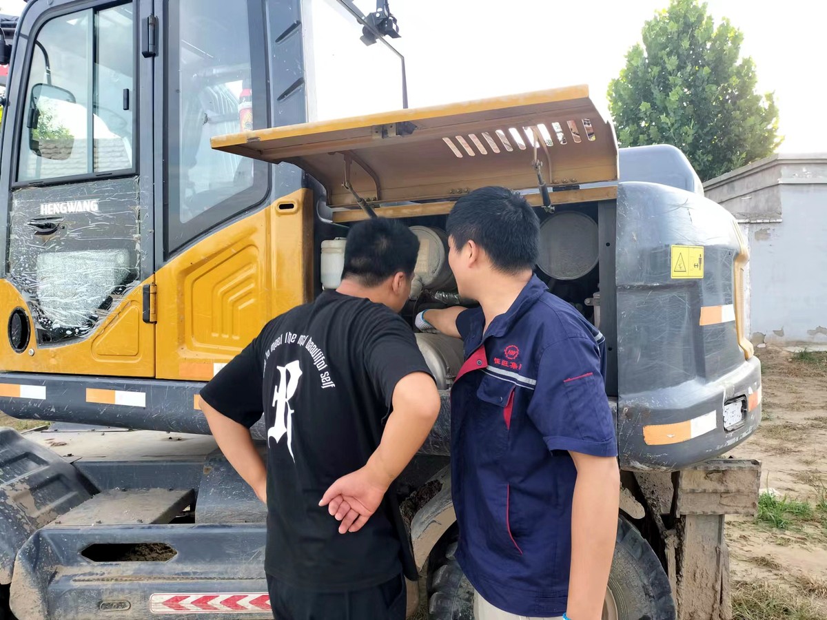售后服务团队的工程师们到达客户施工现场后立马为客户检修机器,发现水温高,边门工具箱锁不上等问题,经过修理已经正常,并与客户进行沟通知道客户机器保养及注意事项。服务小组根据不同用户单位产品和工作环境,采取针对性的产品检修、沟通交流、意见收集等,让客户进一步了解和熟悉产品,使用起来更加得心应手,不断提升客户对恒旺产品认可度。