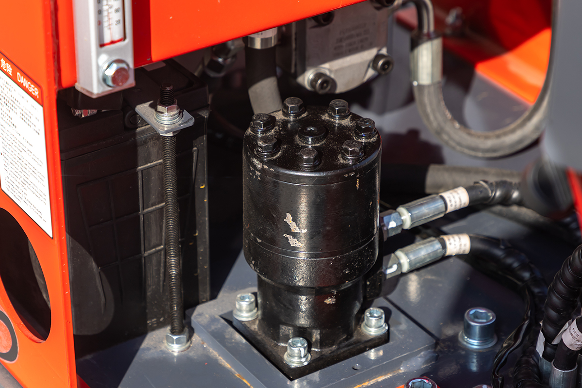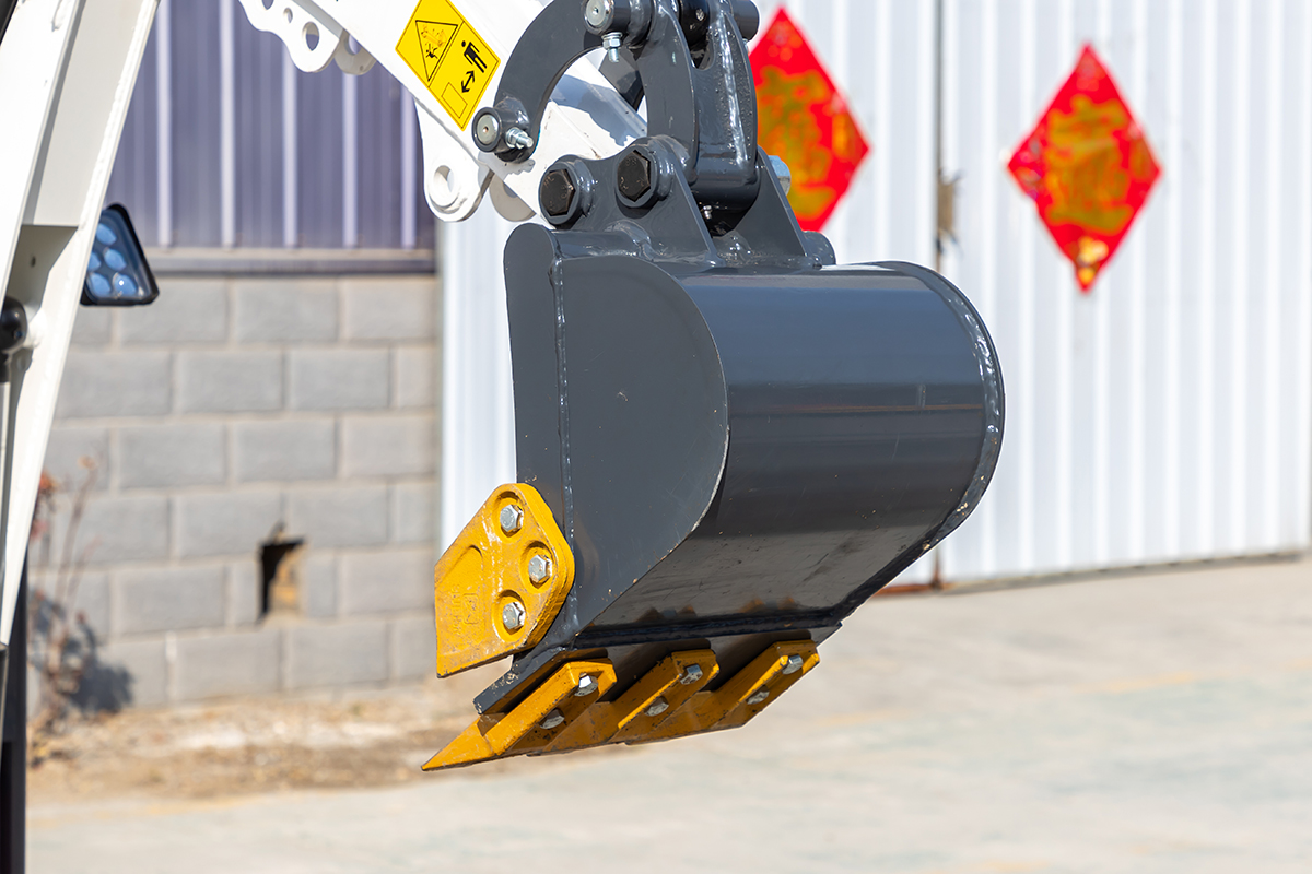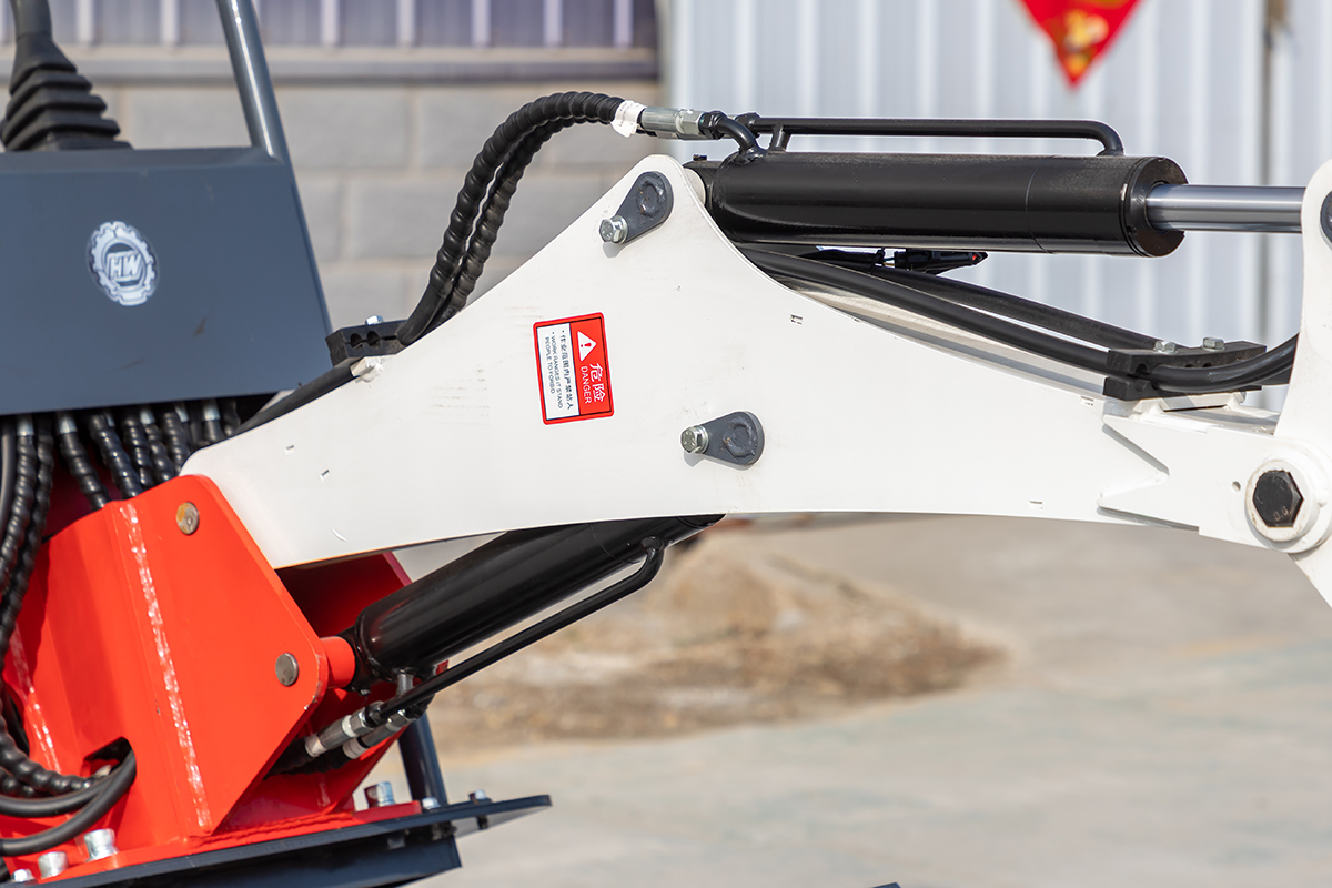 5. 大臂侧移装置:机体前部装备动臂侧移装置,大臂可侧摆左边90度,右边50度,从而真正实现类似墙根地带的直接挖掘工作,而无须频繁移动机身,更加适用于狭小场地作业。